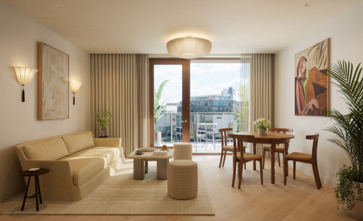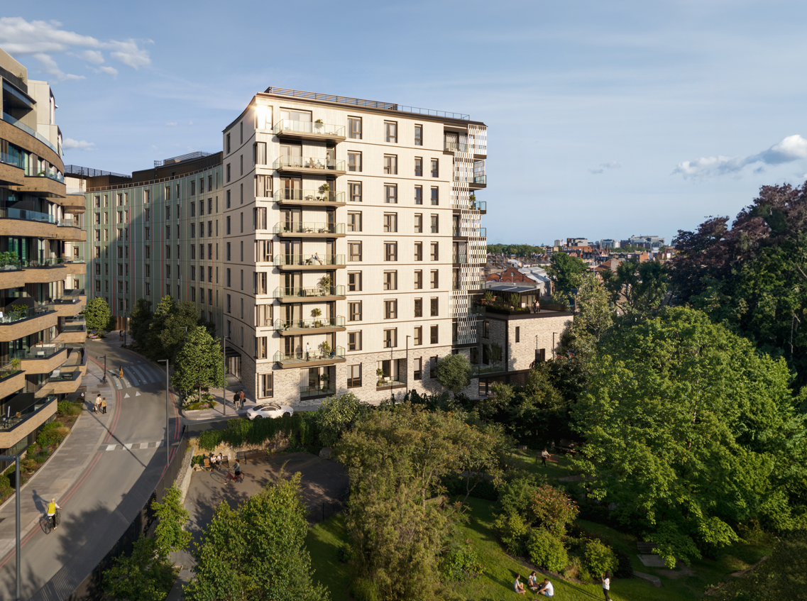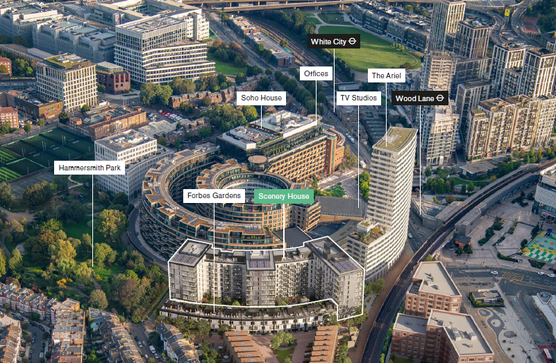 Scenery House is an 8-storey residential building offering a standout collection of 1, 2 and 3-bedroom apartments and penthouses, within Television Centre at White City, London. It is an inviting collection of private apartments arranged in a south facing crescent around courtyard gardens. Designed by Stirling prize winning architects dRMM on the site of the BBC’s former ‘Scenery Block’, the building sits adjacent to Hammersmith Park and benefits from south facing balconies.