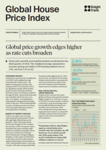 - House price growth across global markets accelerated in the third quarter of 2025. The weighted average annual price increase among our basket of 55 housing markets rose to 2.4%, up from 2.2% in Q2.