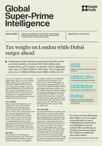 Knight Frank’s Global Super-Prime Intelligence report provides a quarterly snapshot of $10m+ residential sales conditions across 12 key international markets.